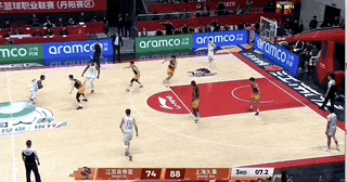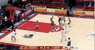第三節比賽才打了不到3分鐘,上海男籃已經五人得分上雙,(古德溫、張鎮麟、王哲林、弗格、李添榮)。弗格在這一節進攻欲望強烈,單節獨攬10分。江蘇隊這邊,亨特與閆實手感全無,兩人三節打完,一共15投2中。