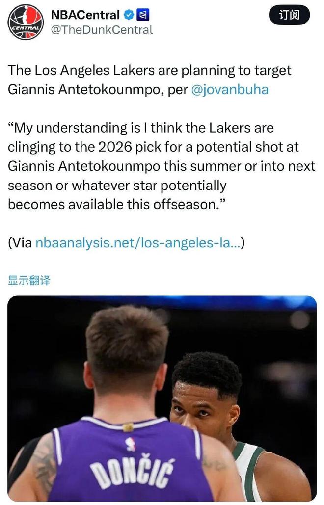 至于接下來的NBA交易市場,最熱門球員莫過于字母哥,名記Buha對此提出湖人可以用里夫斯+3個首輪簽去跟雄鹿協商談判。