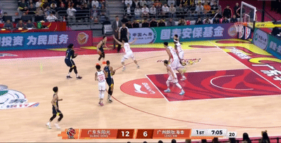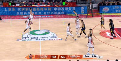 第三節(jié)7分30秒,廣州隊(duì)進(jìn)攻回合,威金頓對(duì)位胡明軒送出精彩助攻,霍勒迪準(zhǔn)確抓到了廣東隊(duì)立足未穩(wěn)的防守空檔輕松投進(jìn)三分,這一幕讓杜鋒直接看呆。
