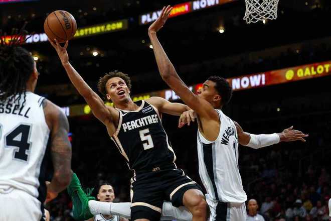 馬刺過去4場湖人、雷霆、尼克斯與奇才收獲4連勝,老鷹上一場客場126-133惜敗黃蜂,本賽季首次交鋒馬刺主場135-116戰勝老鷹。本場老鷹缺少波爾津吉斯與特雷-楊,馬刺在開局5-6落后情況下,很快一波6-0攻勢取得領先優勢。馬刺被追到13-11,并在之后維持23-19領先優勢,但馬刺打出一波9-0攻勢拉開比分,首節比賽結束馬刺32-19領先老鷹13分優勢。