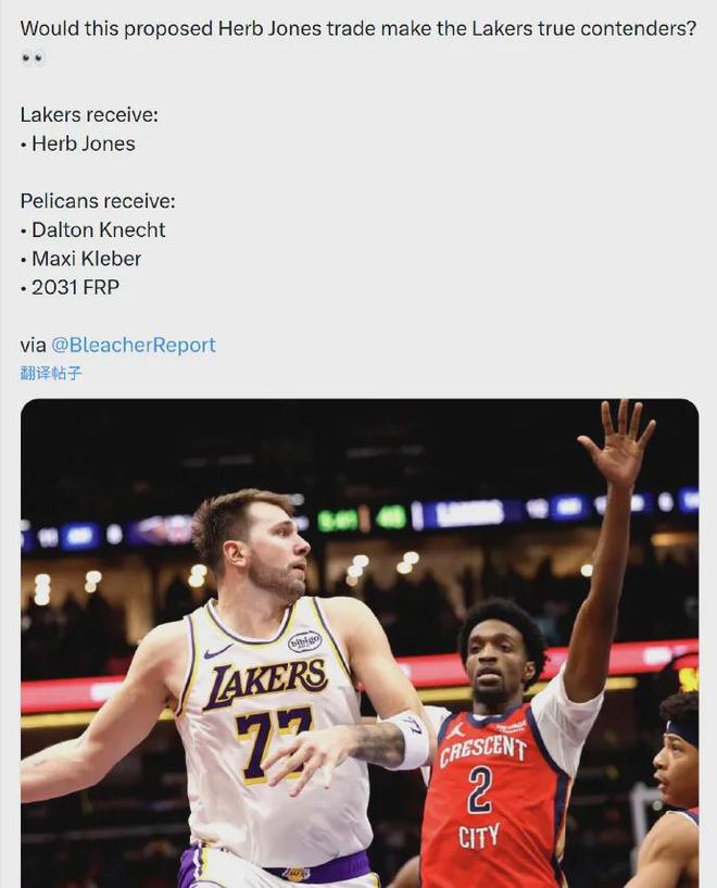 之前美媒《露天看臺》為湖人出謀劃策,表示可以送出克內克特+克勒貝爾+31年首輪簽,從鵜鶘換來瓊斯。然而外界普遍認為,瓊斯值得兩個首輪簽。