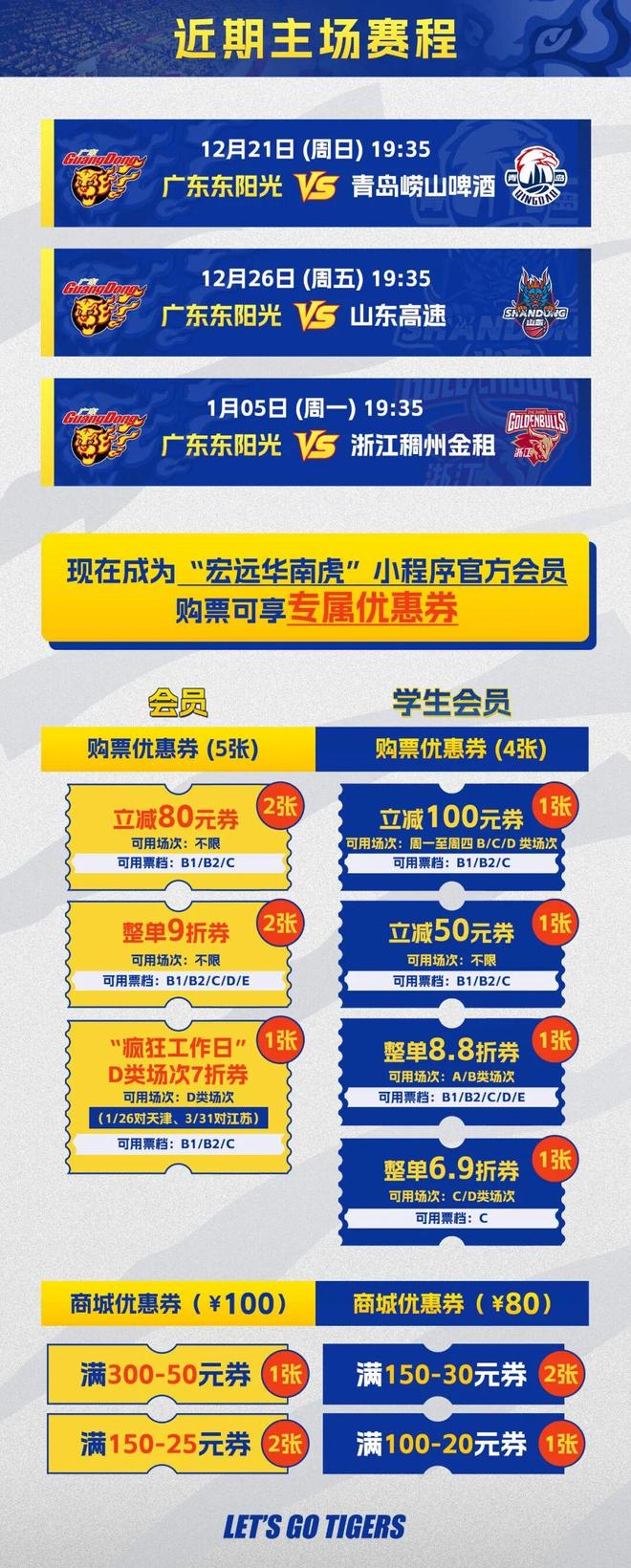 12月21日,CBA常規賽第4輪,廣東東陽光將在主場迎來“冬至大戰”,對手為青島嶗山啤酒男籃。上賽季兩次交手,華南虎保持全勝。