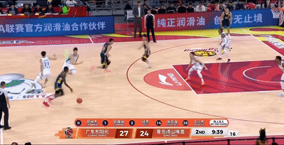 1分54秒,由于不滿判罰,杜鋒進線咆哮孫健吃到1個技犯,青島趁機連下3分反超,但接下來廣東憑借節末階段徐杰奎因的2記三分打出一波7-0,反超青島取得27-24領先(廣東單節三分5中4)。
