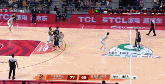 末節單外援決戰,韋瑟斯龐還是沒回來,米奇出任先發,開局奎因再進高難度高打板突破并且還制造了一次搶斷,8分39秒徐杰拋投打進后再飚進一記三分,廣東領先再次來到11分。