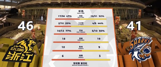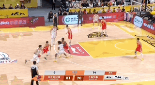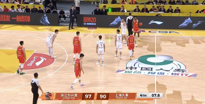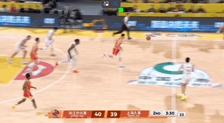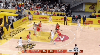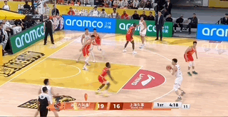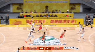 本節(jié)末段,廣廈依靠著不斷的防反打出一波10-2的小高潮,上海久事男籃以41-46落后5分進(jìn)入更衣室。