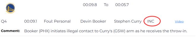 第二次是漏判,發生在距離比賽結束還有9.1秒,裁判報告指出,當時布克推了庫里,應該要吹犯規,但裁判沒有響哨。這是一次漏判,從報告上看是勇士吃虧,但當時比賽只剩不到10秒,太陽落后1分,布克雖然第一意愿肯定是爭取搶斷這個球,但后來應該是要故意犯規來停下比賽時間讓庫里去罰球。只是裁判沒有響哨,庫里最終上籃得分。