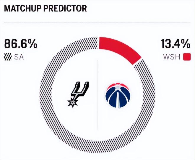 賽前,美媒ESPN對本場比賽進行了勝率預測,奇才隊勝率僅有13.4%,劣勢明顯,馬刺隊勝率則高達86.6% 。