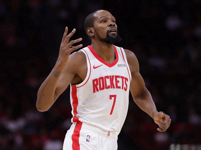 休賽期引進(jìn)杜蘭特,從根本上解決關(guān)鍵時(shí)刻沒有一錘定音球員短板的休斯頓火箭,一躍成為了眾多球迷眼中的爭(zhēng)冠大熱門,但是在常規(guī)賽開打之后,火箭卻暴露出了遇強(qiáng)不強(qiáng)的問題,直到上一場(chǎng)在丹佛擊敗約基奇領(lǐng)軍的掘金,才打破了自己賽季面對(duì)勝率超60%球隊(duì)一勝難求的魔咒。