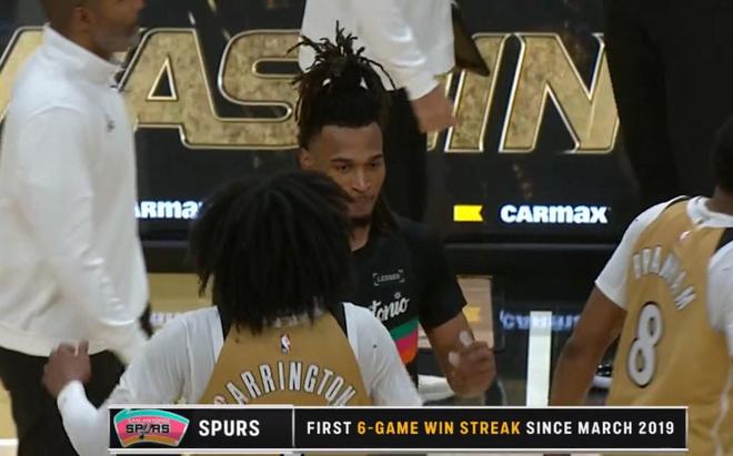 北京時間12月22日,圣安東尼奧馬刺在客場124-113戰(zhàn)勝華盛頓奇才,取得六連勝,目前他們以21勝7負的成績領(lǐng)先丹佛掘金0.5個勝場獨占西部的第二位。本場比賽文班亞馬僅出戰(zhàn)22分鐘,得到14分12籃板,福克斯則砍下27分7籃板6助攻,科內(nèi)特20分12籃板,卡斯爾18分5籃板11助攻。賽后根據(jù)統(tǒng)計,馬刺此次戰(zhàn)勝奇才之后拿到的六連勝是他們自2019年3月以來首次達到這一成績。