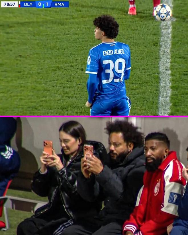 在青年歐冠聯賽階段第五輪比賽中,皇馬U19客場對陣奧林匹亞科斯U19,最終皇馬U19隊2-0擊敗了奧林匹亞科斯U19隊。比賽下半場第79分鐘,馬塞洛的兒子恩佐-阿爾維斯替補出場,完成自己在青年歐冠的首秀。而馬塞洛也在場邊見證了兒子的青年歐冠首秀,并用手機記錄下了這一時刻。現年16歲的恩佐-阿爾維斯目前效力于皇馬青訓梯隊,據悉他司職前鋒。