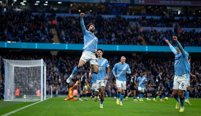 開場才1分鐘時間,曼城立馬打出了高速閃擊戰;格瓦迪奧爾后場長傳送到右路,努內斯與B席撞墻配合立馬沖入禁區倒三角回敲,福登包抄墊射入網,1:0!福登這粒進球時間確切在59秒,成為了本賽季英超的最快進球紀錄;同時福登英超生涯203次出場已打入63球,這使得他的英超進球數超過貝克漢姆和亞亞-圖雷。