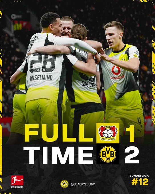 北京時間11月30日01:30,德甲聯賽第12輪,勒沃庫森坐鎮主場迎戰多特蒙德。上半場,安塞爾米諾先拔頭籌。易邊再戰,阿德耶米再下一城,科法內扳回一球,霍夫曼、波庫中框,布蘭特失單刀。最終勒沃庫森1-2多特蒙德。積分榜方面,多特25分升至第三,勒沃庫森23分第四。