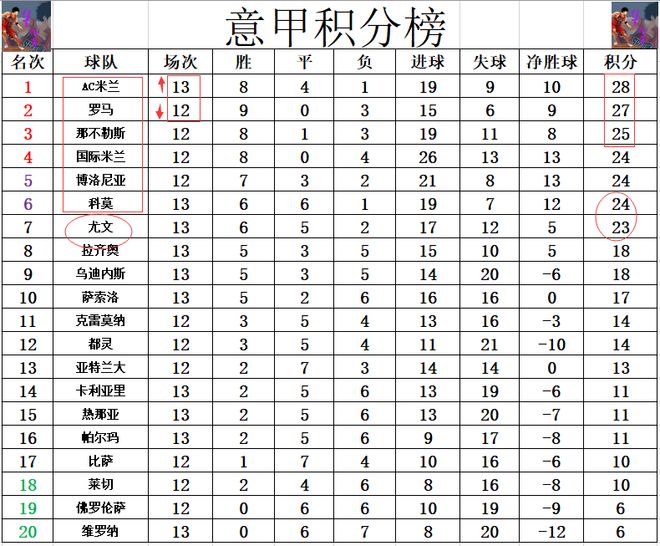 積分榜方面,AC米蘭先賽贏球后,連續12輪不敗,暫時超過羅馬1分登頂成功,羅馬跌到第2,那不勒斯第3。國米,博洛尼亞,科莫少AC米蘭4分,分列4到6名。尤文今天雖然贏了球,但差科莫1分,還是排在第7。