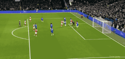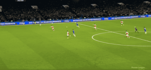 第12分鐘,賴斯的界外球被解圍,埃澤送出妙傳,薩卡準備打穿桑切斯的小門,被藍軍門將識破。
