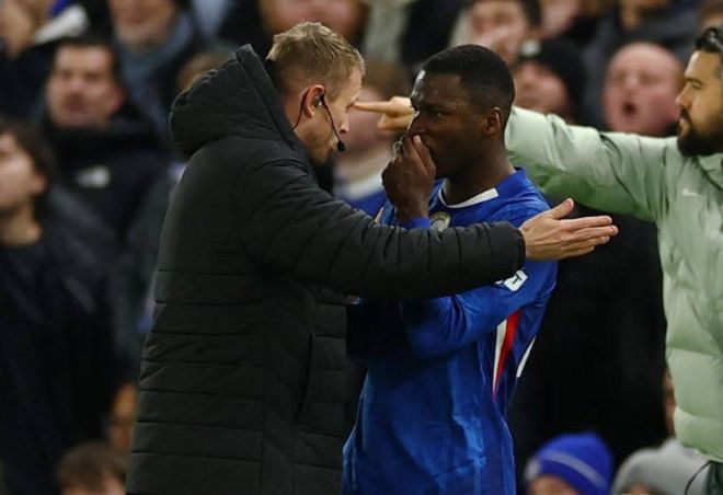 切爾西首發(fā):1-桑切斯、27-古斯托、29-福法納、23-查洛巴、3-庫庫雷利亞、24-詹姆斯、25-凱塞多、41-埃斯特旺、8-恩佐、7-內(nèi)托、20-若昂·佩德羅