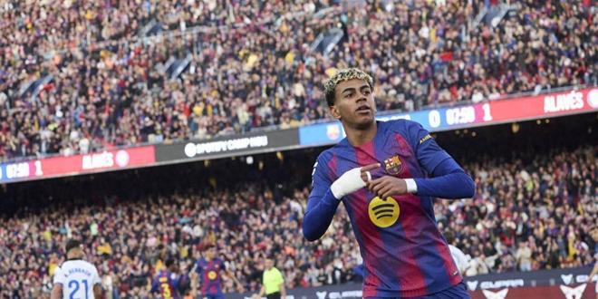 但巴薩并未慌亂。第8分鐘,杰拉德·馬丁左路轉移,巴爾德在邊線外接球后內切吸引防守,送出精準直塞。哈菲尼亞高速插上后回做,丹尼·奧爾莫在近門柱拼搶中倒地,遠端無人盯防的18歲小將拉明·亞馬爾冷靜左腳推射得手,1比1!