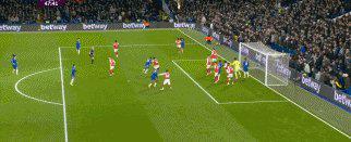 13’賴斯大力手拋球被解圍后,埃澤傳至右側空當,薩卡低射被羅伯特·桑切斯用腿擋出。