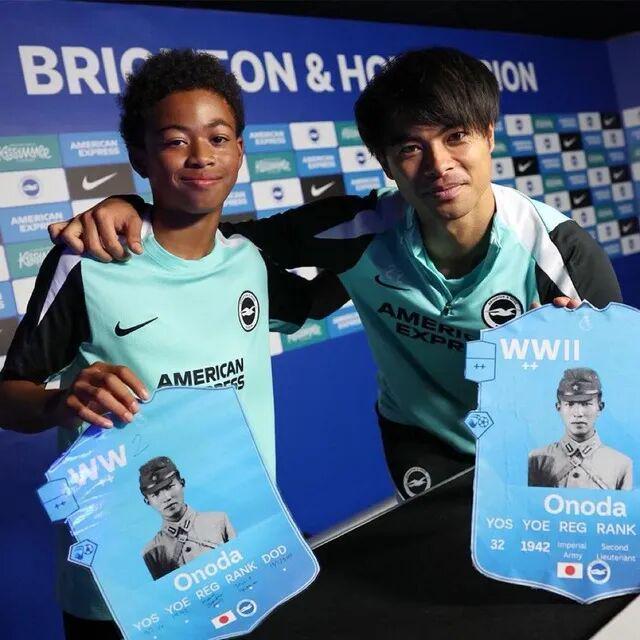 大陸網易號“笑男聊體壇”指出,布萊頓當時讓青訓小球員搜集一戰人物故事做成足球卡片,“結果有位這名小球員竟然選日本二戰‘最后鬼子兵’小野田寬郎,并找日本國腳三笘薰合影,兩人都拿著小野田寬郎的卡片?!?/p>