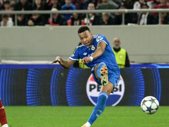 上半場(chǎng)開(kāi)場(chǎng)僅僅8分鐘,主場(chǎng)作戰(zhàn)的奧林匹亞科斯取得領(lǐng)先,波登斯分球,奇奎尼奧和卡埃比打出了一個(gè)撞墻的配合,奇奎尼奧右腳抽射破門(mén),1-0皇馬,這個(gè)開(kāi)局有些沒(méi)有想到。第16分鐘,阿諾德角球直接攻門(mén)被門(mén)將輕松沒(méi)收。而從第22分鐘開(kāi)始到第29分鐘,姆巴佩突然大爆發(fā),短短7分鐘上演了帽子戲法的好戲,先是維尼修斯助攻姆巴佩推射入網(wǎng)、接著居萊爾助攻姆巴佩頭球破門(mén)、卡馬文加挑傳+姆巴佩單刀推射又進(jìn)球,皇馬幾乎是瞬間3-1反超了奧林匹亞科斯。