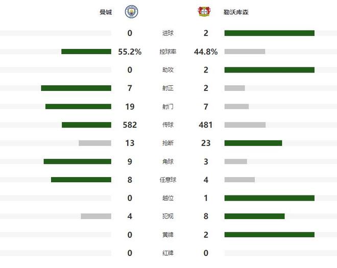 下半場(chǎng)瓜迪奧拉一口氣換上了福登、奧賴?yán)投鄮?kù),想要加強(qiáng)球隊(duì)的進(jìn)攻,不過(guò)第54分鐘勒沃庫(kù)森就給了主隊(duì)沉重一擊,身高1米91的大中鋒希克,接到隊(duì)友45°傳中后,頭球破門得分,幫助勒沃庫(kù)森將領(lǐng)先的優(yōu)勢(shì)擴(kuò)大到了2球。