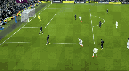 第43分鐘,恩佐在本方半場被搶斷,利茲聯連續傳遞,田中碧遠射破門,打進了個人的英超生涯首球。
