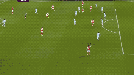 第11分鐘,厄德高策動進攻,馬杜埃凱腳后跟拉球,本懷特下底傳中,梅里諾頭球破門。