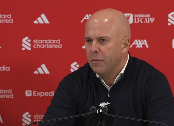 英超第14輪,利物浦主場1-1戰(zhàn)平桑德蘭,賽后,紅軍主帥斯洛特出席新聞發(fā)布會接受媒體提問。