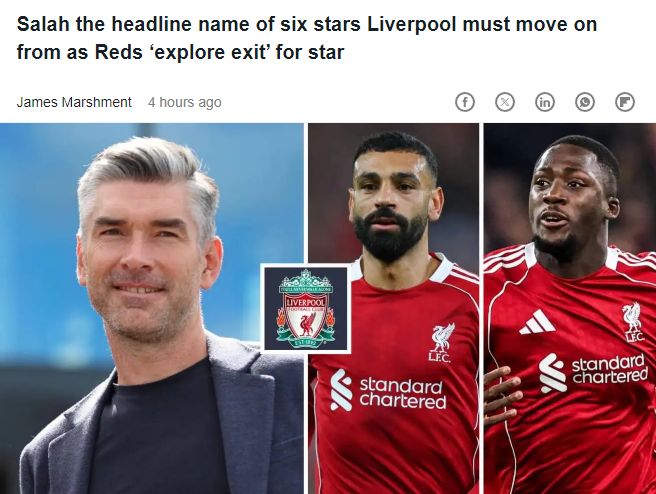 北京時間12月5日,據英國轉會網站teamtalk報道稱,利物浦已在積極籌劃2026年的賣人計劃。體育總監理查德·休斯計劃清洗6名一線隊球員,包括薩拉赫以及一位今年夏窗才加盟的“重磅新援”。
