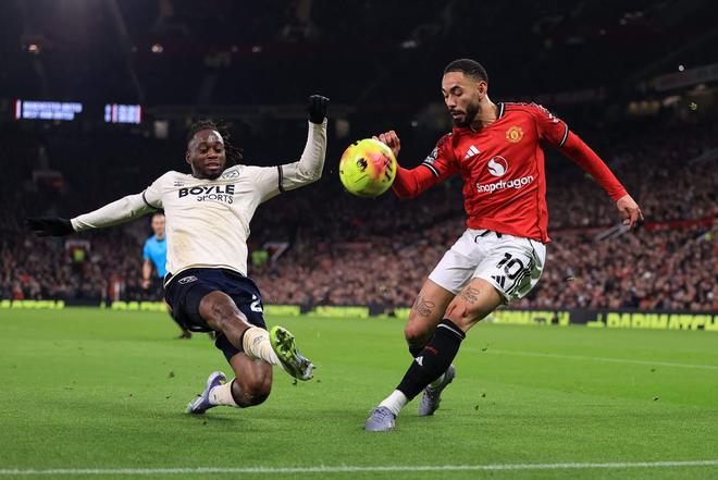 這位26歲的球員常遭球迷批評,但這次他的第一下觸球穩穩停住了卡塞米羅的射門,隨后第二下便巧妙地將球送過了阿雷奧拉。很少有英超主教練會鼓勵自己的左翼衛在場上占據這樣的位置,但阿莫林的戰術思路在此結出果實。作為隊內速度較快的成員之一,達洛特是執行這種頗具雄心的打法的合適人選。