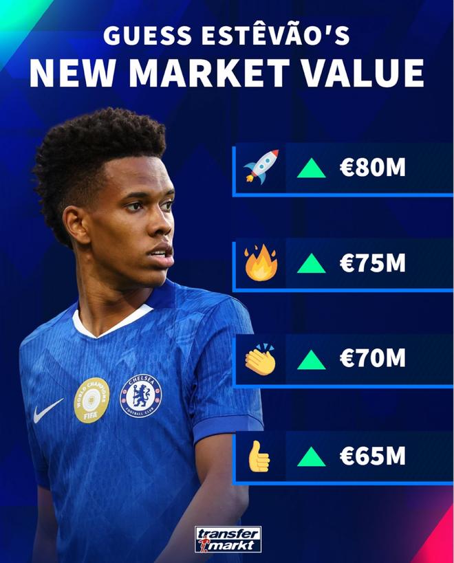 德轉將在12月9日對英超球員的身價進行更新。今日德轉預熱切爾西邊鋒埃斯特旺身價上漲,球員最低漲至6500萬歐,最高8000萬歐。德轉給出了4個可能的結果,上漲至6500萬歐、上漲至7000萬歐、上漲至7500萬歐、上漲至8000萬歐。目前球員的身價為6000萬歐。本賽季截至目前,埃斯特旺共為切爾西在各項賽事出場19次,打進5粒進球,送出1次助攻。【上咪咕獨家看英超】