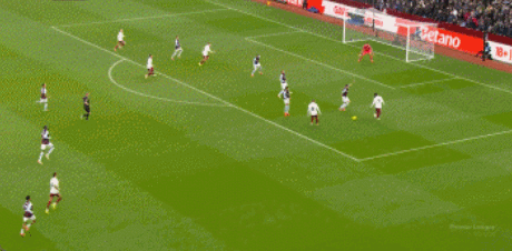 第11分鐘,維拉反擊,沃特金斯擺脫兩名防守球員之后左腳抽射被門將拉亞撲出,這是開場以來雙方的第一腳威脅打門。