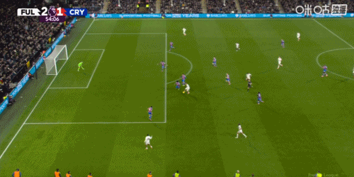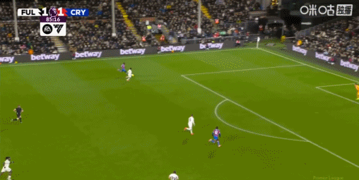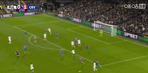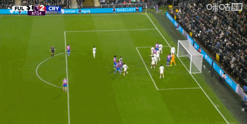 第87分鐘,皮諾開出角球,格伊頭球破門,水晶宮2-1富勒姆