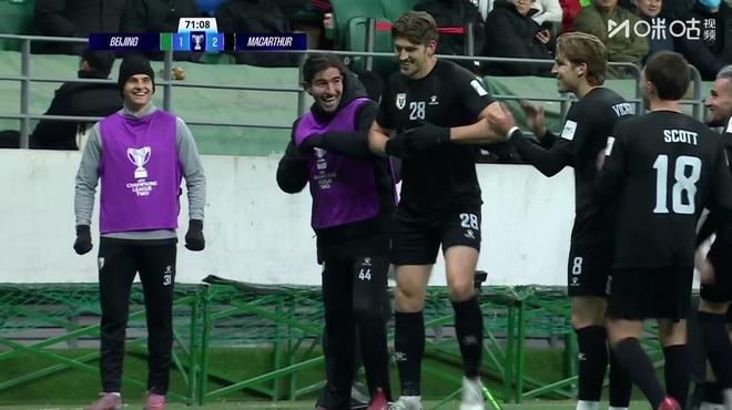 下半場易邊再戰,原本半場場面占據一定優勢的國安卻先丟球。第56分鐘,麥克阿瑟FC左側角球開入禁區,國安禁區內防守漏人,波波維奇頭球攻門打破僵局,國安0-1落后。