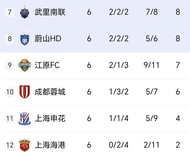 6輪過后,蓉城1勝3平2負積6分位列東亞區第10,也就是倒數第3,反過來正好就是本賽季中超前3排名!