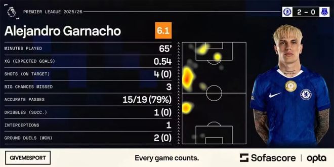 對(duì)陣埃弗頓的68分鐘里,加納喬“兌現(xiàn)”了質(zhì)疑:數(shù)據(jù)層面,21歲的他錯(cuò)失3次重大機(jī)會(huì)(本賽季英超第4位單場(chǎng)做到這一點(diǎn)的球員),4腳射門無一射正;對(duì)抗0勝出,32次觸球里僅6次在埃弗頓禁區(qū)。