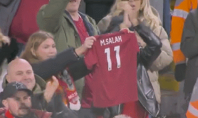 賽后,薩拉赫繞場為球迷鼓掌,而利物浦球迷也不斷高喊薩拉赫的名字并送出掌聲。