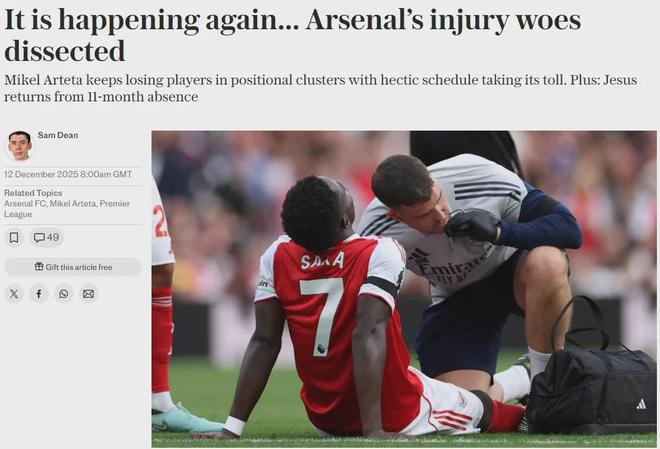 阿森納目前擁有世界上最深厚也最昂貴的陣容,但傷病已然成為阿爾特塔最頭疼的問題之一,本賽季目前為止,25名一線隊球員中,有17名球員因為受傷或者生病缺席至少1場比賽,在英超聯賽中,只有利茲聯的傷病問題更突出,而這甚至還沒有反映更加嚴重的問題,那就是阿森納的傷病往往集中在同一位置上……