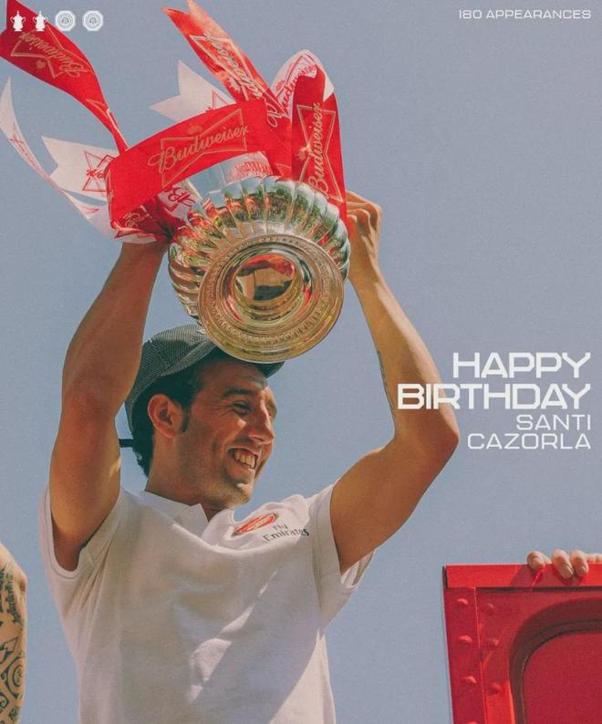 180場比賽29個進球,2個足總杯冠軍,2個社區盾杯冠軍,耳邊永遠的:“Oh!santi cazorla!”