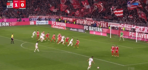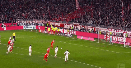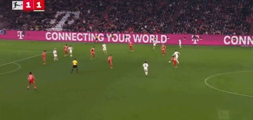 第16分鐘,韋拉施尼奇左路傳中,金玟哉頭球解圍擊中李在城的背部反彈到橫梁上彈出,拜仁逃過一劫。