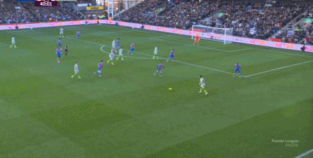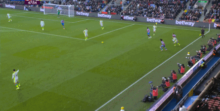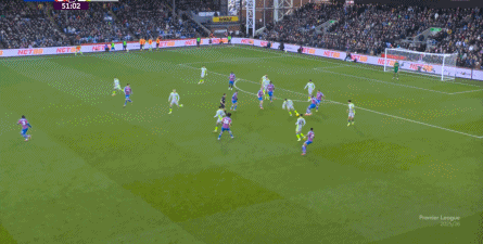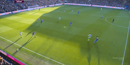 這一丟球,讓主場作戰的水晶宮難以接受,所以在這之后,他們試圖打出反制,但成型的兩次不同的進攻,還是迎來了相同的結果: