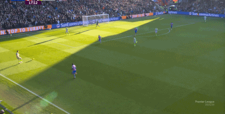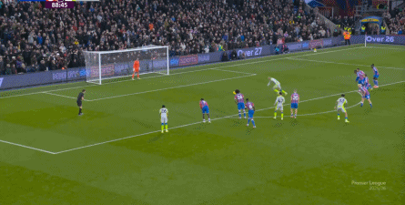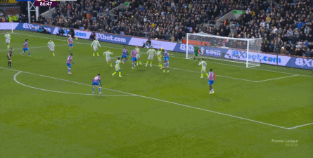 不過,人還在,精力不可能和上賽季類似,所以哪怕在主場,水晶宮依然保守應對,直至第10分鐘,采用連續爭高球的方式打進了禁區: