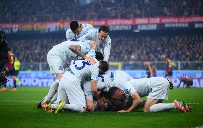 率先出場的AC米蘭被薩索洛逼平,那不勒斯又翻車不敵烏迪內斯,爭冠的對手同一輪集體沒有贏球,這讓國米看到了反超的機會??蛻馃崮莵啽热说?分鐘便接到勞塔羅的回敲后左腳勁射近角打破場上平衡;第38分鐘,勞塔羅禁區內扛開防守后勁射再接再厲擴大優勢;勞塔羅也成為了姆巴佩,哈蘭德和凱恩后,僅有的連續7個賽季在五大聯賽參與進球上雙。縱使熱那亞下半場追回一球,國米仍然2:1取勝,反超米蘭1分來到意甲榜首。